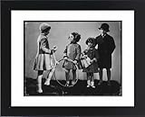 14 x11 Framed Print, Black Satin Frame White Digital Mat. exhibiting CHILDREN/TWEED COATS. Boy tweed hat a D-B coat lower with the newly trendy long lapels. Girls woollen coats with flared skirts, wrap over fastening with velvet or fur trim a a hat or bonnet. Chosen with the aid of Mary Evans. 14 x11 wood frame with digital mat and RA4 print. Finished again including brown backing paper, putting bracket and nook bumpers.